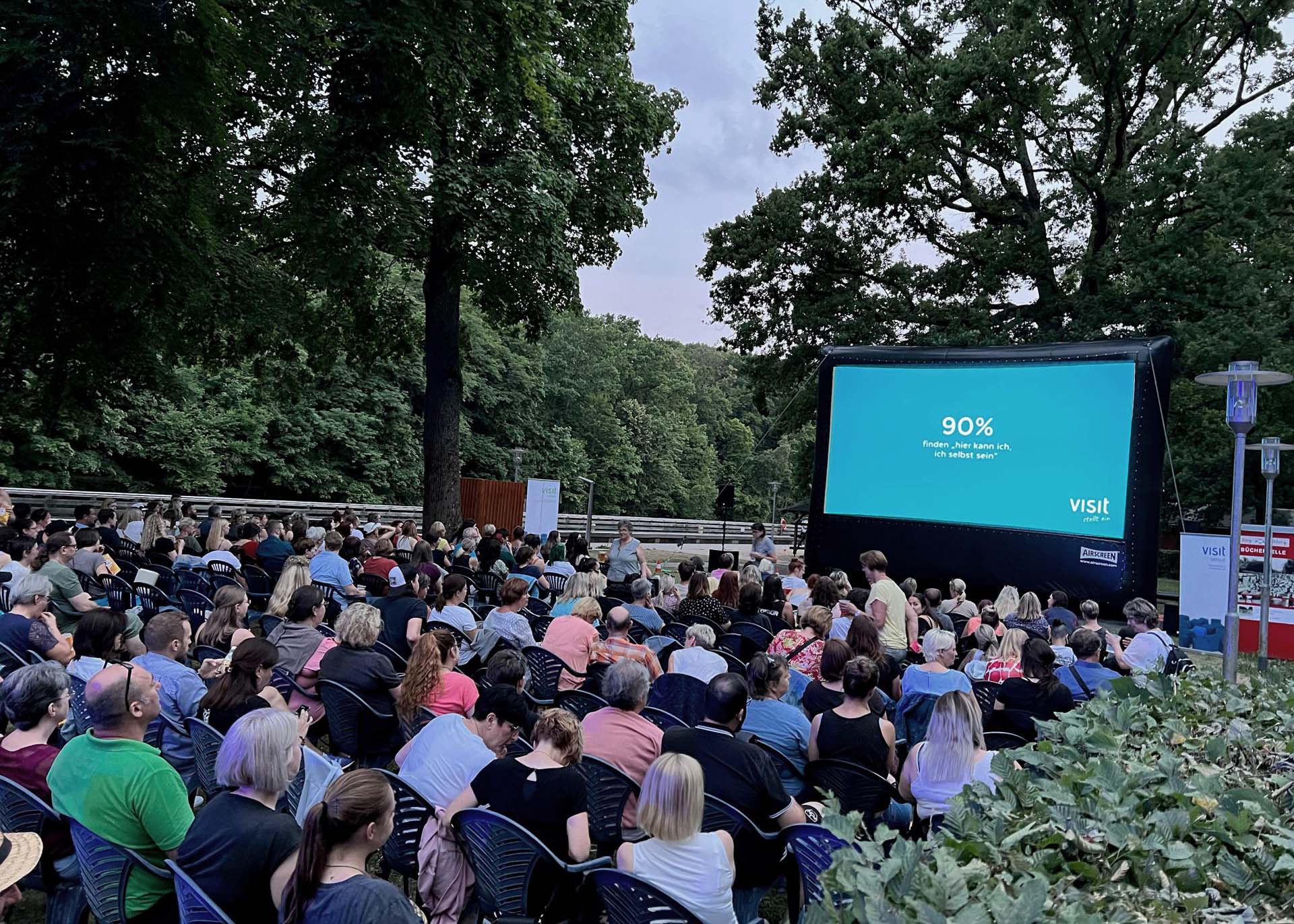 Die MitarbeiterInnen aller Standorte der visit Gruppe trafen sich zu einem sommerlichen Kinoabend im Hainbad Bamberg. Gemeinsam wurde der Film „Contra“ geschaut – begleitet von erfrischenden Getränken und leckerem Popcorn in besonderer Open-Air-Atmosphäre.
