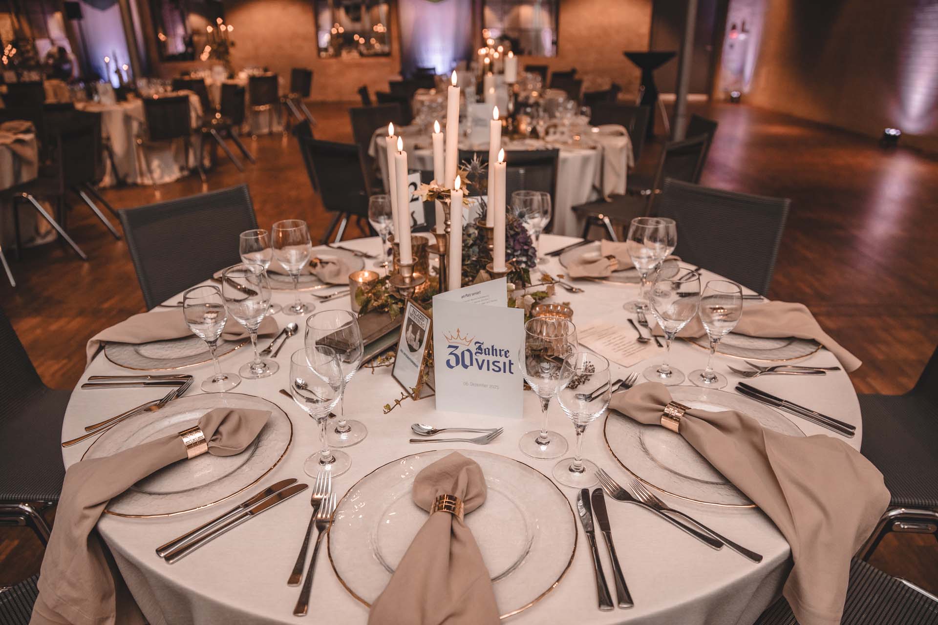 Die Weihnachtsfeier im Ziegelbau Bamberg stand in diesem Jahr auch im Zeichen eines besonderen Jubiläums: 30 Jahre visit Gruppe. Ein emotionaler Moment war die Zepter Übergabe von Sabine und Peter König an die nächste Generation. Ein festliches Buffet und Live-Musik rundeten den Abend ab.